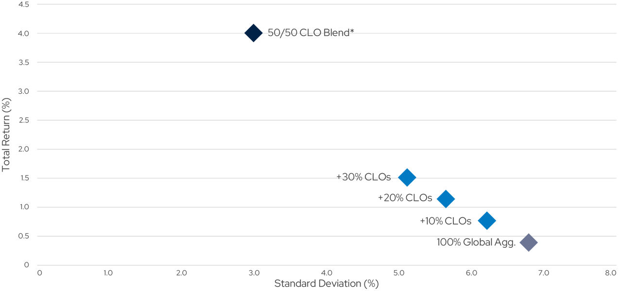 Allocating 10% to 30% of an aggregate bond portfolio to AAA CLOs has historically improved risk-adjusted returns, especially during periods of market stress or rate uncertainty. “CLOs fit in well because they don’t carry generic credit or idiosyncratic industry risk tied to a single underlying asset. They don’t rely on one single company or sector for repayment, which minimizes concentrated exposure,” Wilches says.