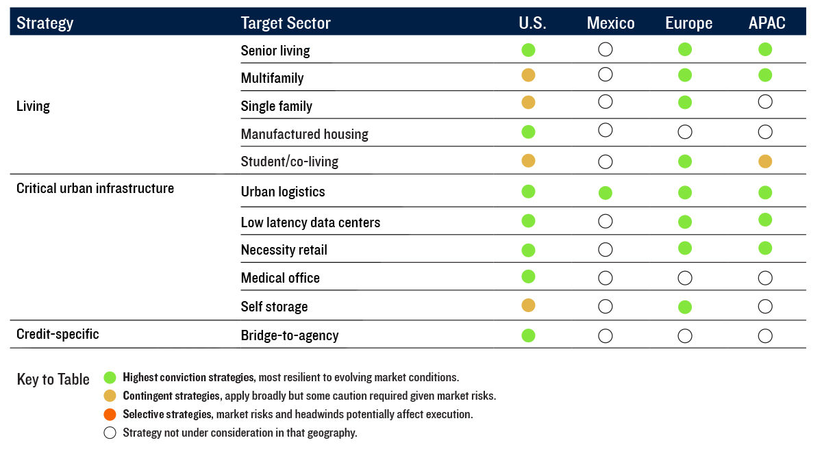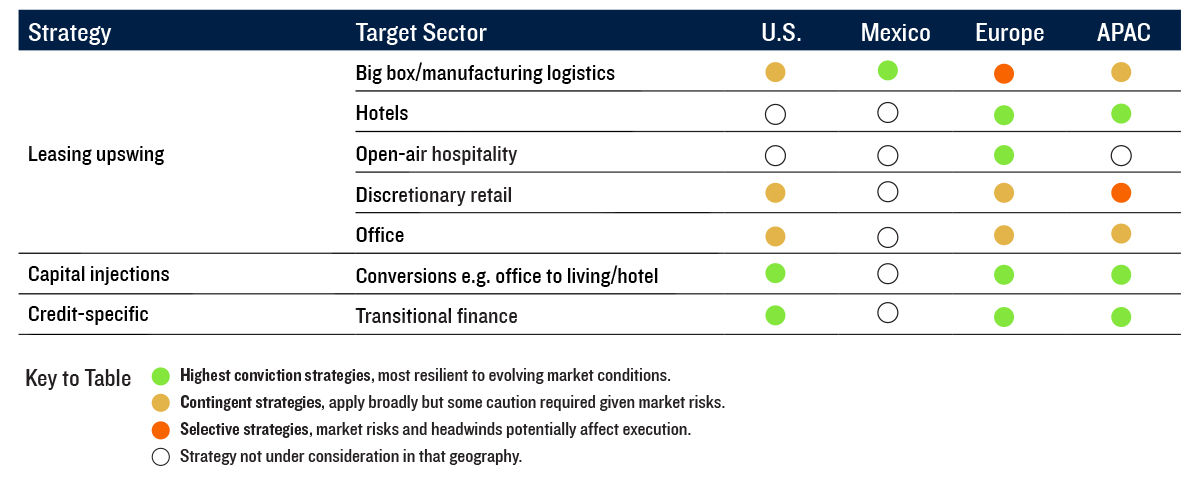 Despite elevated global risks, liquidity is improving and there are significant opportunities related to the anticipated upward momentum of cyclical valuations, supporting strategies targeting leasing growth, capex deployment, and capital stack restructuring.
